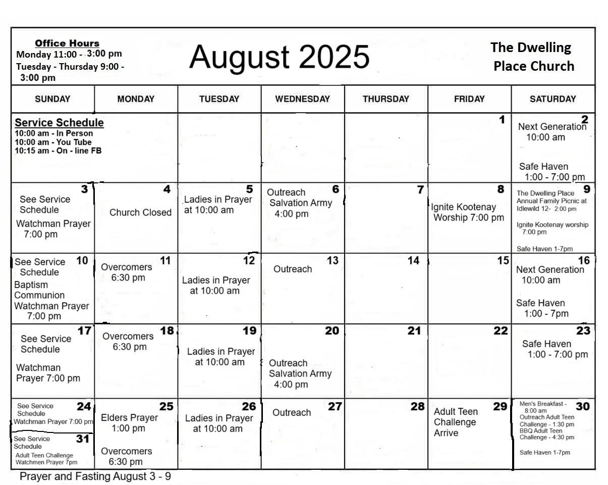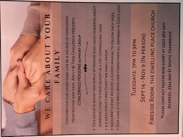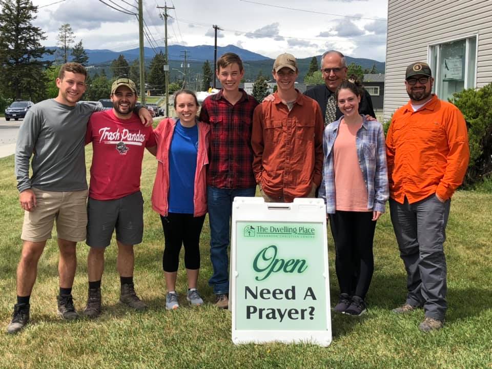 This group of young men and women from the USA were on a day outing near the Canadian border and it started to rain. They decided to visit a town in British Columbia to pray in a church. They had already been to Fernie so they thought they would come to Cranbrook, as they had been praying for Cranbrook for over a year now!! One of the 5 young interns saw our sign “Need a Prayer?” and they stopped at our church - The Dwelling Place. She also attends a church in Alabama called The Dwelling Place!